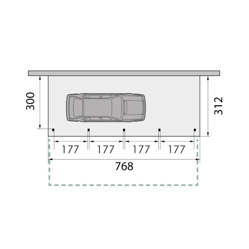 Carport 1 voiture mural ouvert KB14 - 312 x 768 cm - 22,32m2