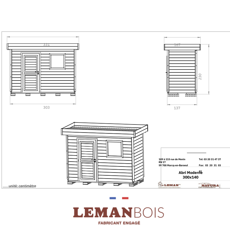 Vous cherchez un abri compact, pratique et esthétique pour optimiser votre espace extérieur ? Ce modèle 300 x 140 cm a été conçu pour s’intégrer facilement dans les jardins urbains, en limite de propriété ou le long d’une façade. Sa configuration avec porte centrée en façade et fenêtre ouvrante sur le côté apporte un vrai confort d’utilisation au quotidien.