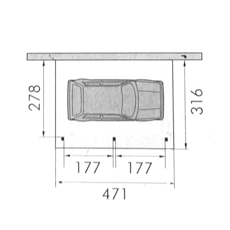 Carport 2 voitures mural ouvert B22 - 544 x 471 cm - 17,61m2